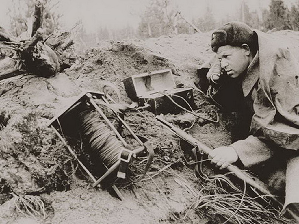 На фото: Советский связист прокладывает телефонный кабель. 194221-я стрелковая дивизия.На 22.06.1941 года дислоцировалась на Дальнем Востоке (Спасск Дальний), 11.09.1941 года начала переброску на северный участок фронта, доукомплектовывается в районе Иваново тяжёлым вооружением, и вошла в состав 7-й армии.