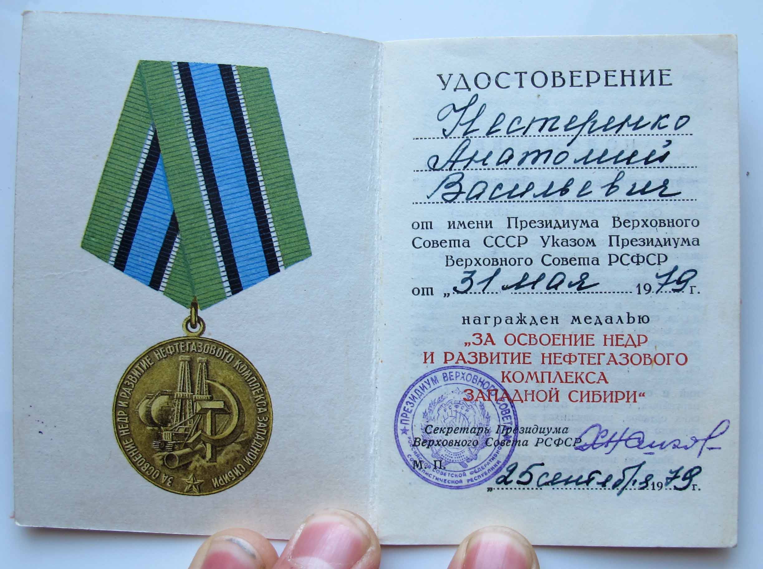 Медали Серп и Молот, За Трудовую Доблесть, За Трудовое Отличие, За Доблестный Труд в Великой Отечественной Войне,За Восстановление Предприятий Чёрной Металлургии Юга, За Восстановление Угольных Шахт Донбасса, За Освоение Целинных Земель, За Строительство БАМ, За Преобразование Нечерноземья РСФСР, За Освоение Недр и Развитие Нефтегазового Комплекса Западной Сибири, Ветеран Труда