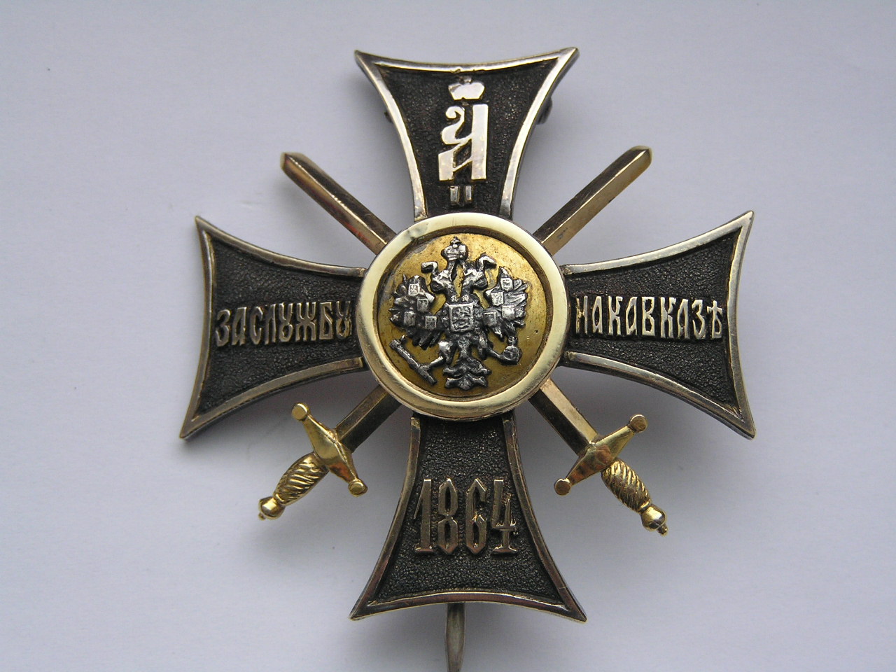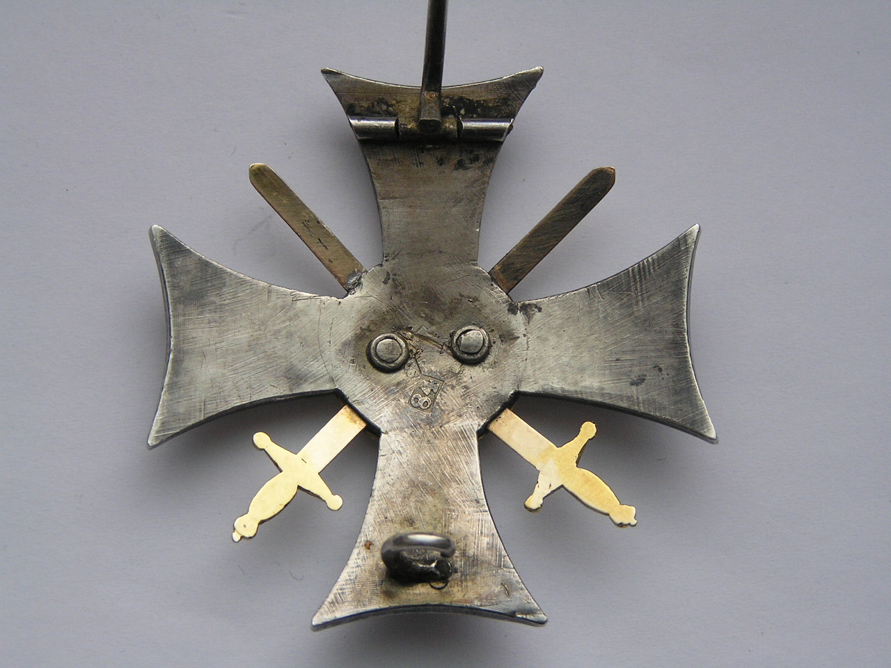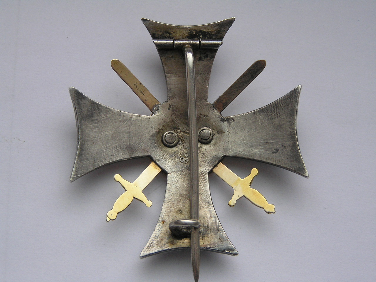 Хорошее состояние . Центральный медальон , ободок и мечи -золото. Сам знак серебро золочение .Размер 50 Х 50 мм..