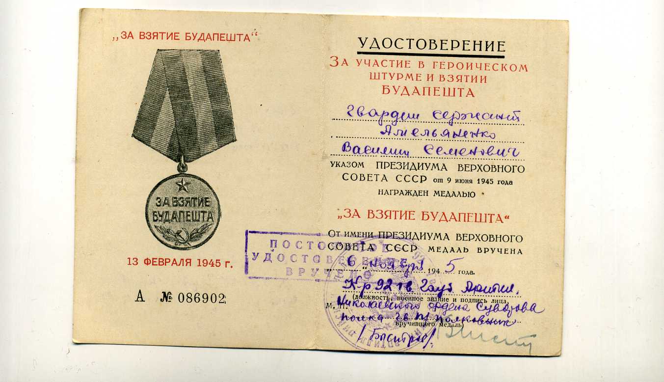 Кавалер БЗ и ордена Славы 3 ст.