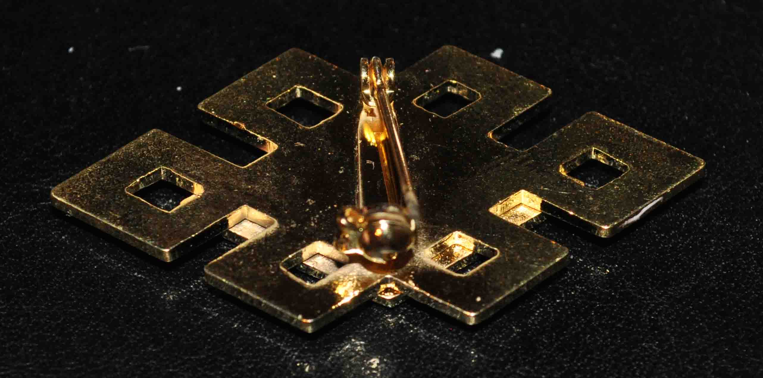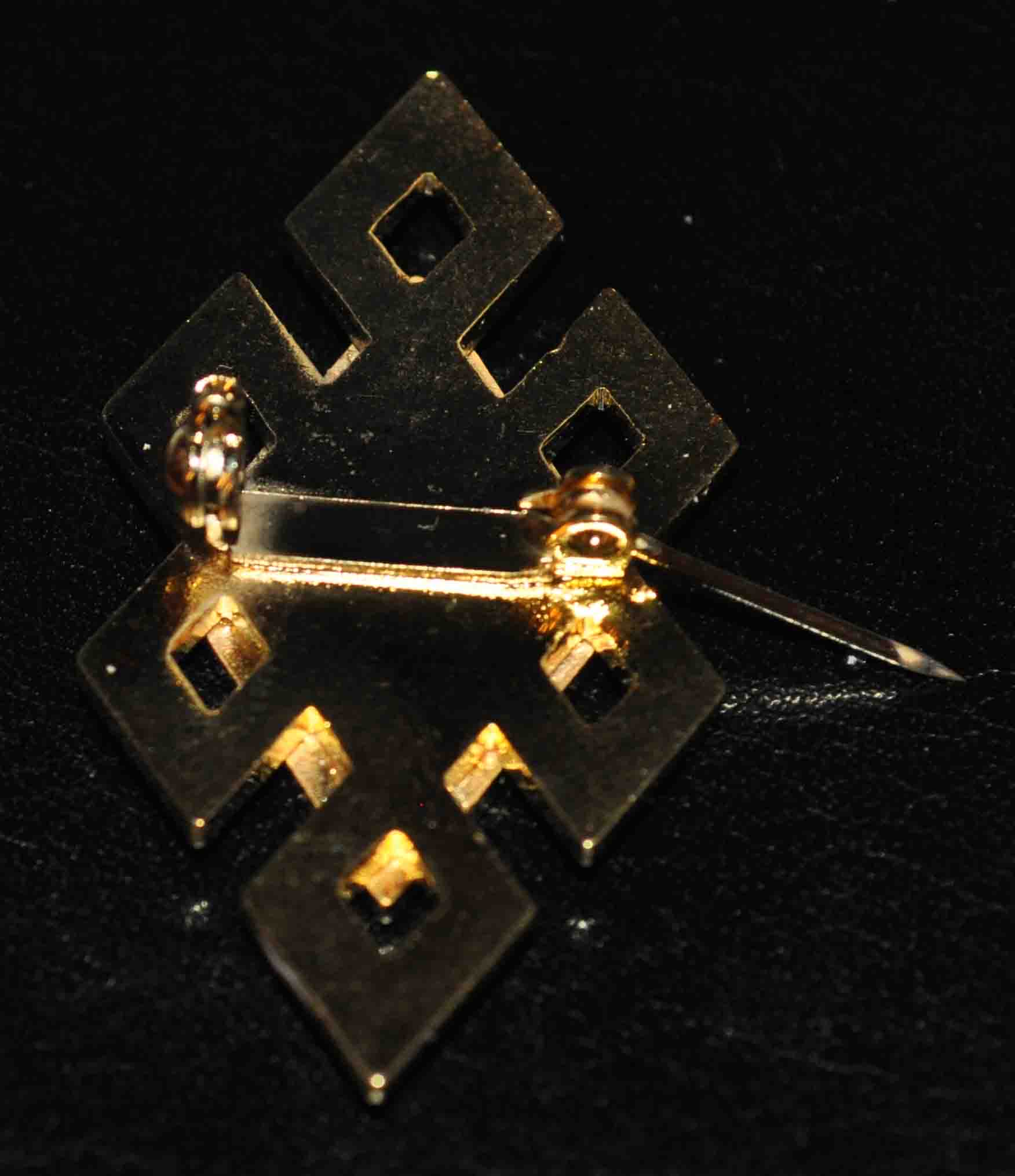 Изготовлен из тяжелого сплава,крепление-булавка,твердые эмали (эпола).
