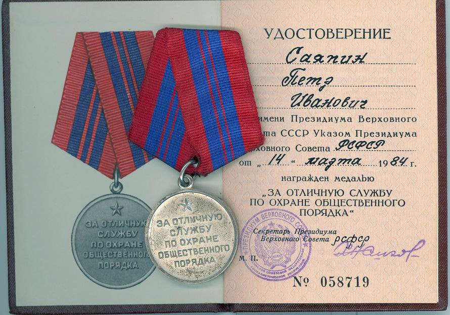 Медали За Отличие в Охране Государственной Границы СССР, За Отличную Службу по Охране Общественного Порядка, За Отвагу на Пожаре, За Спасение Утопающих, Медали 100 Лет со Дня Рождения В.И. Ленина, Двадцать Лет Победы в ВОВ 1941-1945 г.г., Тридцать Лет Победы в ВОВ 1941-1945 г.г., Сорок Лет Победы в ВОВ 1941-1945 г.г., XX лет РККА, 30 Лет Советской Армии и Флота, 40 Лет Вооруженных Сил СССР, 50 Лет Вооруженных Сил СССР, 60 Лет Вооруженных Сил СССР, 70 Лет Вооруженных Сил СССР, 50 Лет Советской Милиции, В Память 800-летия Москвы, В Память 250-летия Ленинграда, В Память 1500-летия Киева. Медали Материнства