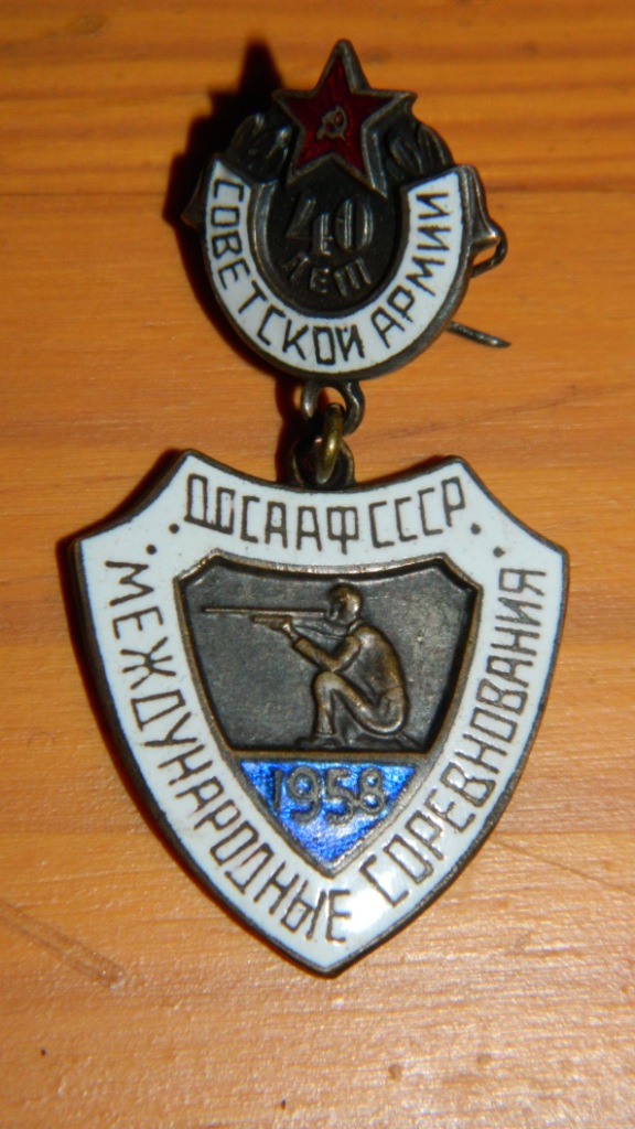 Приветствую всех. Продам знак Международные соревнования в честь 40-летия Советской Армии (ДОСААФ). Состояние знака Отличное, проблем нет.