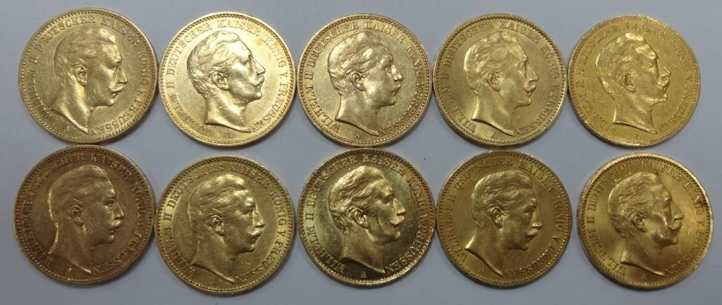 Золото 20 марок Вильгельм II 10 шт.