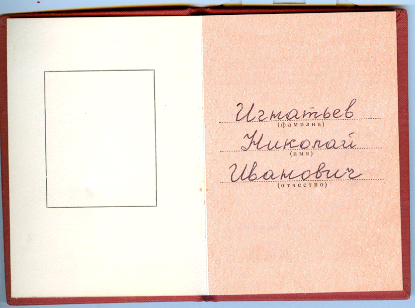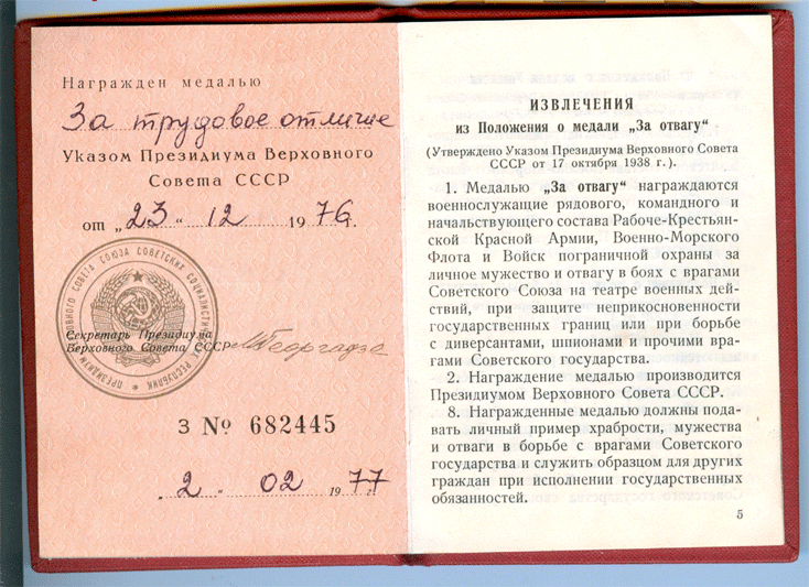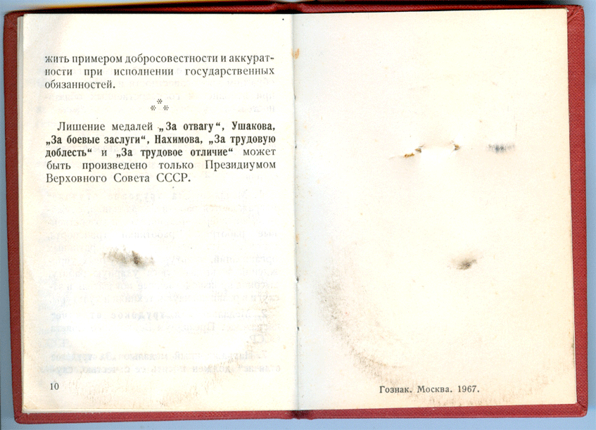 Медаль в люксе, была приколота к последней страничке документа.