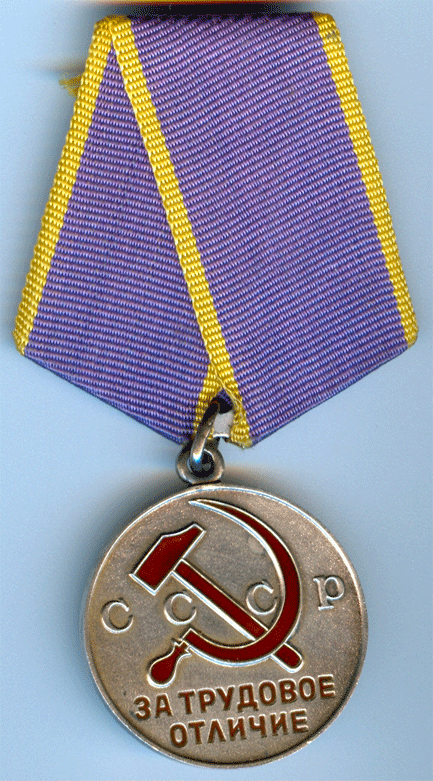 Медали Серп и Молот, За Трудовую Доблесть, За Трудовое Отличие, За Доблестный Труд в Великой Отечественной Войне,За Восстановление Предприятий Чёрной Металлургии Юга, За Восстановление Угольных Шахт Донбасса, За Освоение Целинных Земель, За Строительство БАМ, За Преобразование Нечерноземья РСФСР, За Освоение Недр и Развитие Нефтегазового Комплекса Западной Сибири, Ветеран Труда