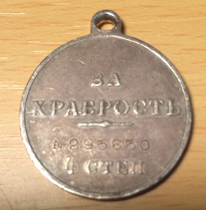 рядовой Михасенок Евстафий, в боях 26-29 марта 1915 года у г. Кальварии, под сильным и действительным огнем противика выносил и вывозил раненных с поля сражения в безопасное место..........