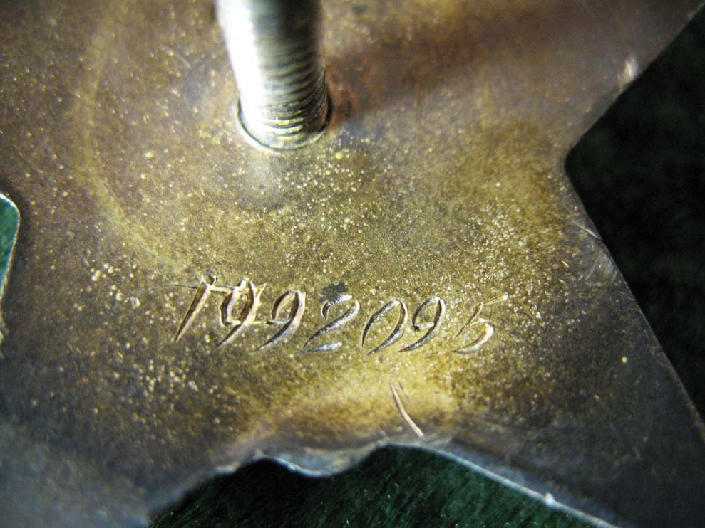 На одной из Звезд имеются небольшие микрочешуйки.Одна из КЗ была выдана за выслугу 15 лет в ВМФ СССР.