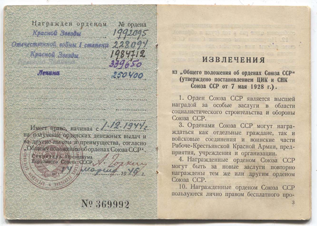 Другие предметы из данного комплекта были реализованы родственниками награжденного относительно давно.
