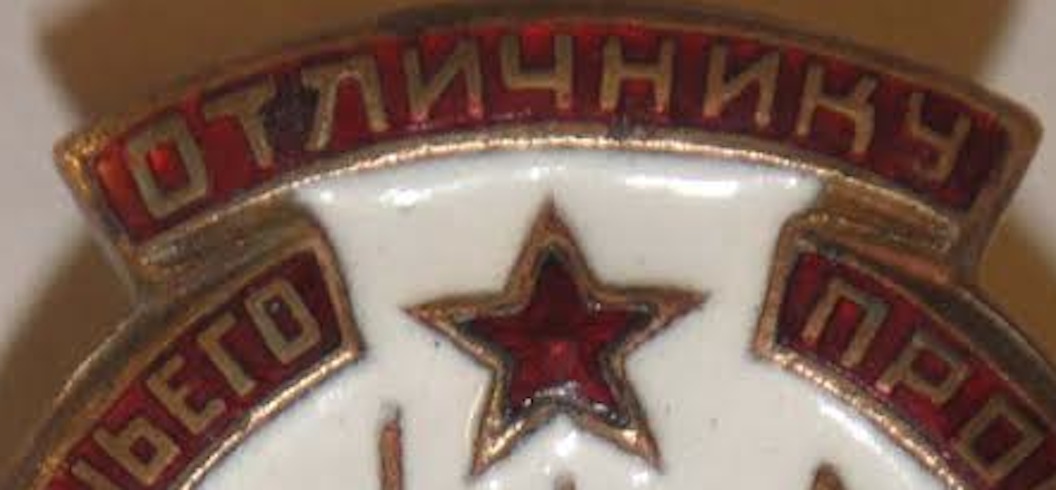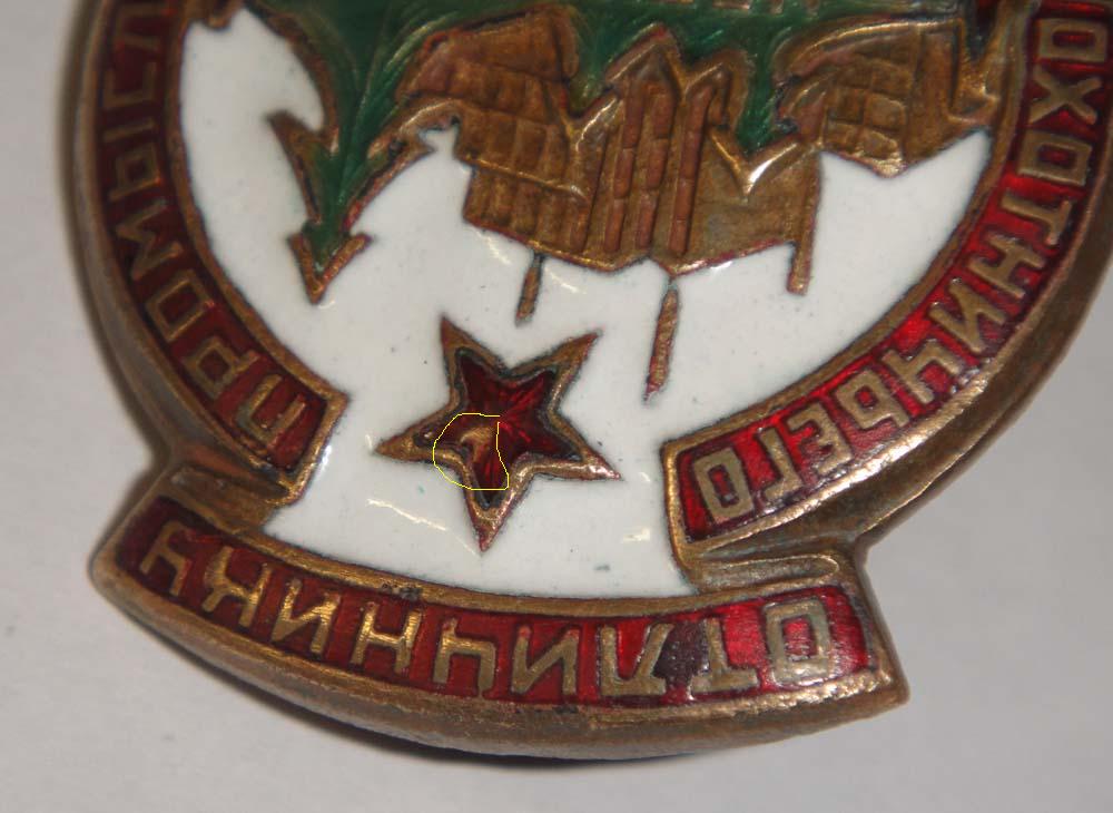 Эмаль вся целая, но есть мелкие царапинки и следы ношения, между буквами Т и Л в слове "Отличник", небольшое потемнение красной эмали.