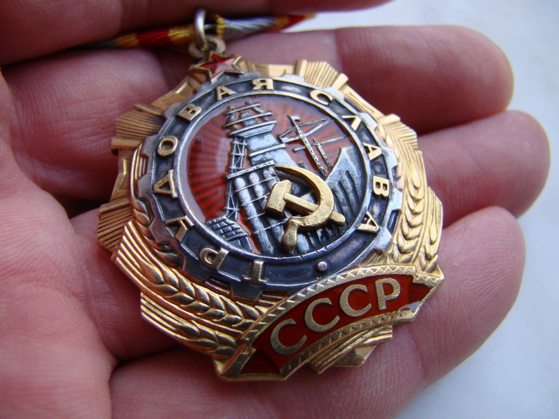 Качественная копия (вернее - подделка) ордена Трудовой Славы 1 ст. № 684 (серебро, позолота, гор. эмаль).