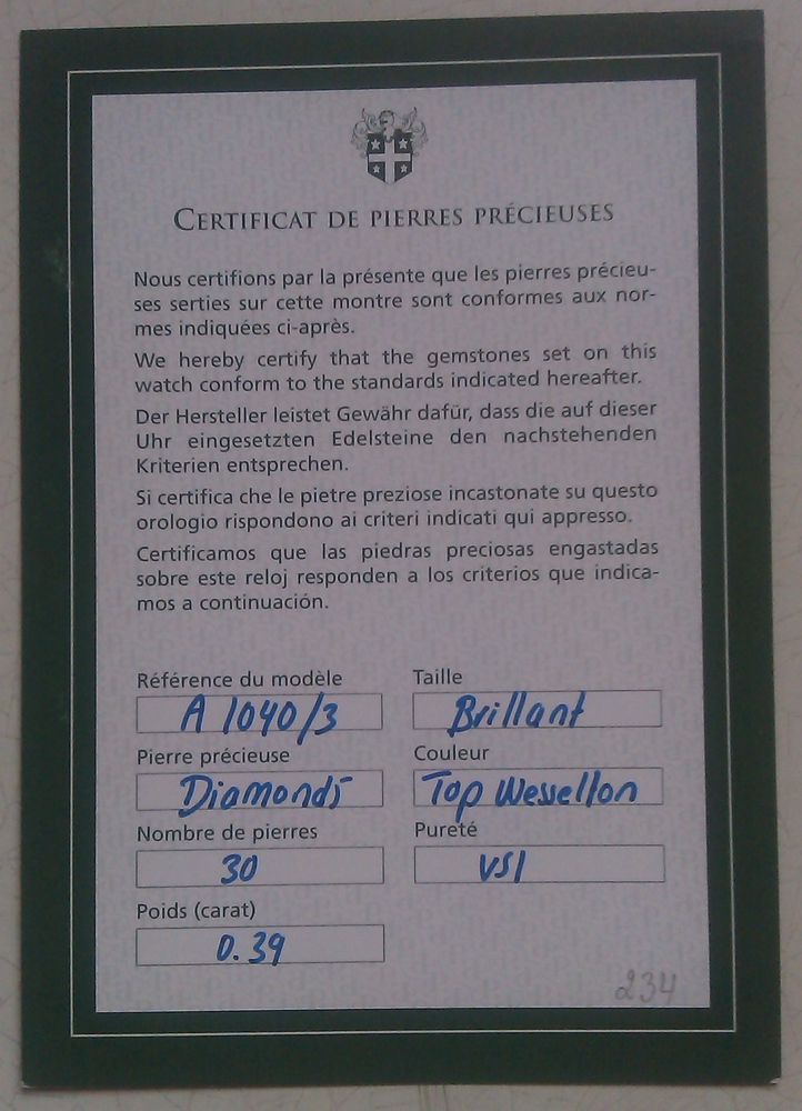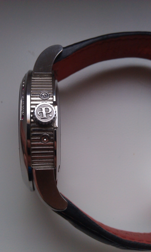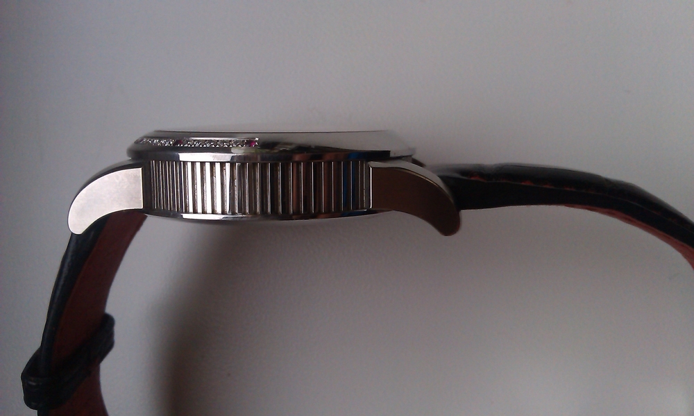 • Материал: Нержавеющая сталь, диаметр 40 мм, 30 бриллиантов (0.39 карат), 7 рубинов,