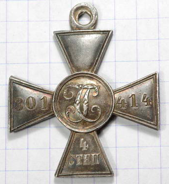 ГК 4-й ст.№301414, награждён Чиботкевич Александр 148 Каспийский пехотный полк. За отличие в бою 4 мая 1915г. у деревни Лесовице.