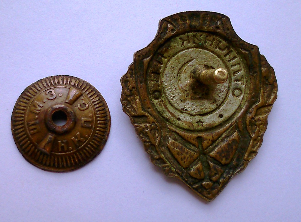 Состояние на фото. Имеются следы ношения, сколов эмали не обнаружил. Винт немного погнут у основания, кажется заводское. Гайка проскальзывает на первых двух витках, дальше держит уверенно. Выставлен на соседнем форуме. Торги не долгие. Пересыл за счет покупателя.