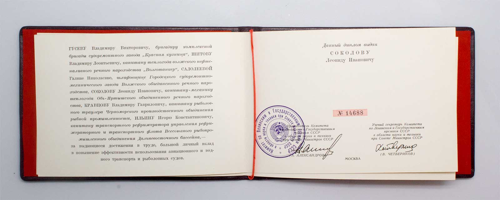 9 октября 2009 года в затоне Омского ССРЗ прошел митинг посвященный присвоению теплоходу «ОТ-2024» имени Леонида Ивановича Соколова.