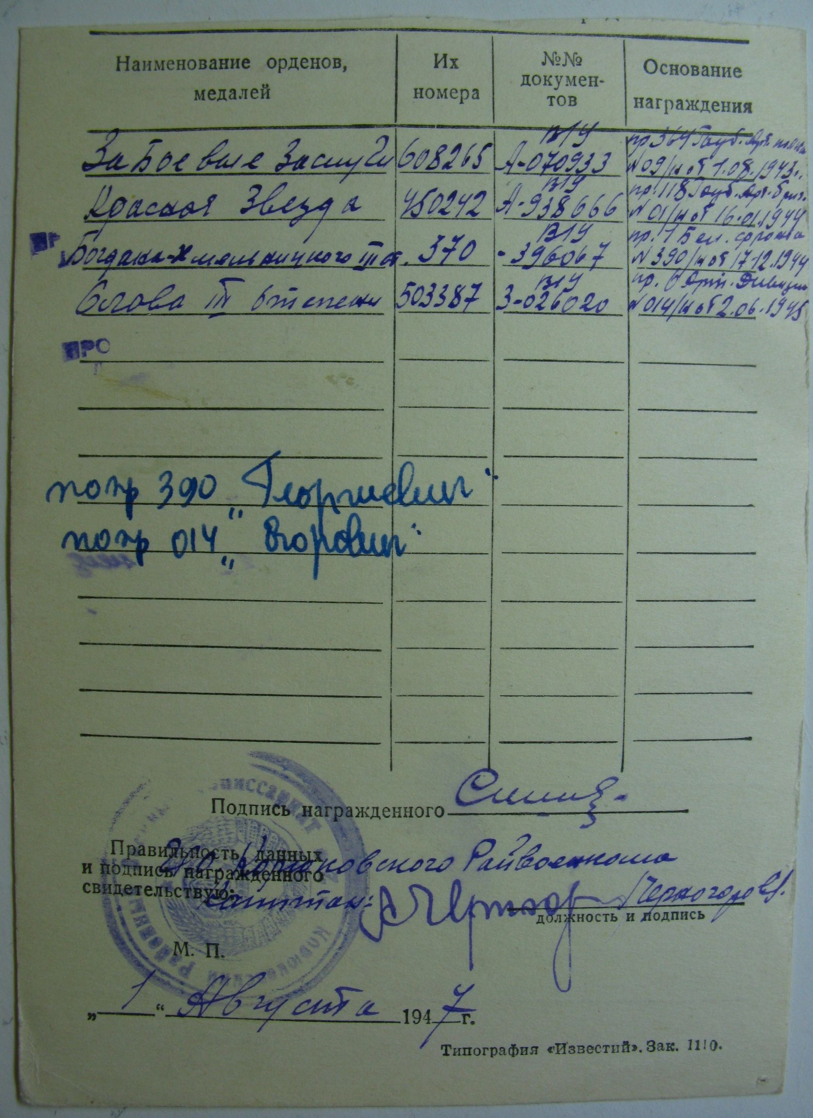 полная пробивка (приказ с подписью Жукова Г.К.), фотки и т.д.