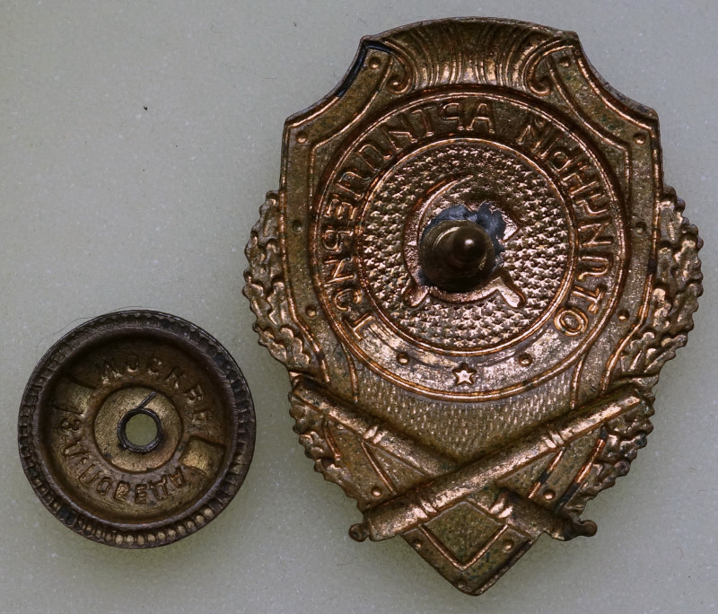 В хорошем сохране. Небольшие повреждения эмали. Скол под "Р".