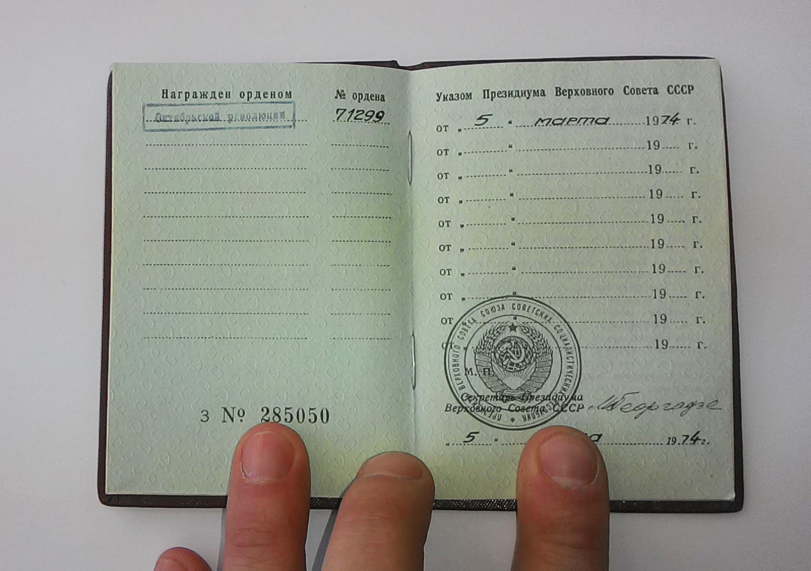 Орден октябрьской революции № 71299 с орденской книжкой. Доставка на покупателе, по РФ. МПЦ 18 000 р. По желанию коробка + 280 р.