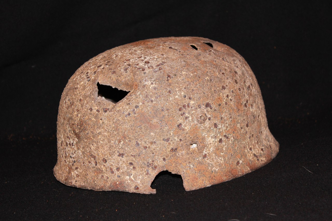 Крепкий антуражный шлем, остатки зимнего камуфляжа.