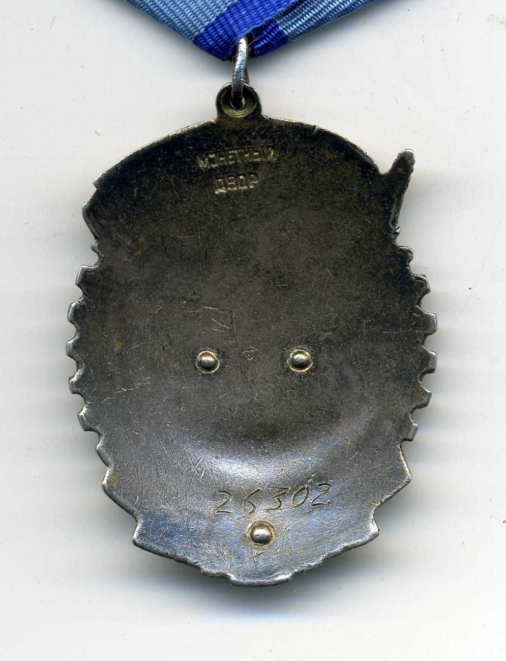 Вариант 4. Клеймо Монетного Двора расположено в верхней части ордена. Слово "МОНЕТНЫЙ" слегка закруглено вниз (горбиком). Длина слова "МОНЕТНЫЙ" составляет приблизительно 8 мм. Высота обеих строк клейма варьируется в пределах 3 - 4 мм. Вероятно, каждое слово клейма наносилось отдельным штампом. Минимальный известный номер 30164, максимальный - 35506. Также отмечены более ранние номера 21488, 23203, 23618 и 26302, выпадающие из номерного интервала и являющиеся исключением.