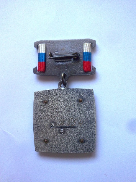 На обратной стороне колодки и нагрудного знака находятся булавочное крепление и номер.