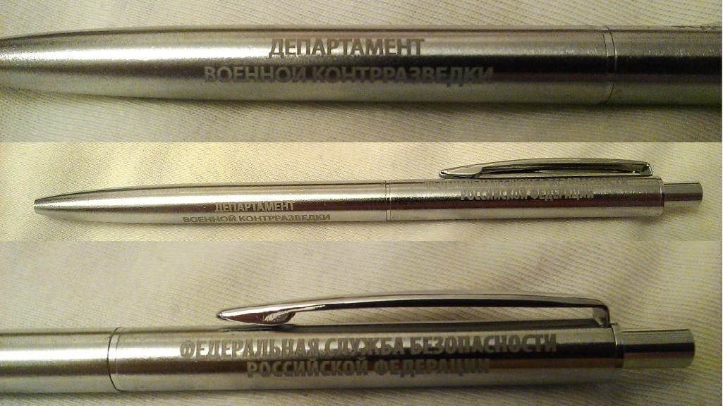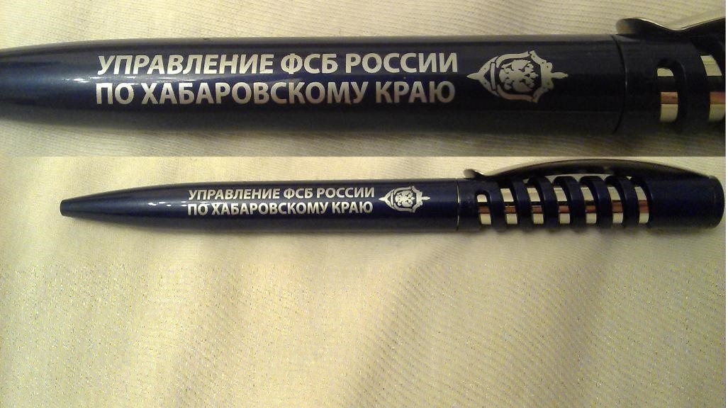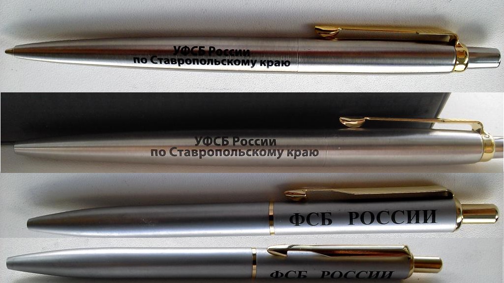 Две шариковые ручки типа "Паркер" с логотипами "ФСБ России" и "УФСБ России по Ставропольскому краю".