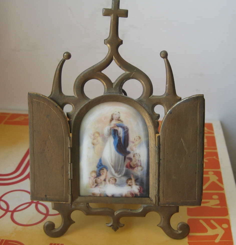 Старинный складень Фарфоровый пласт Мадонна