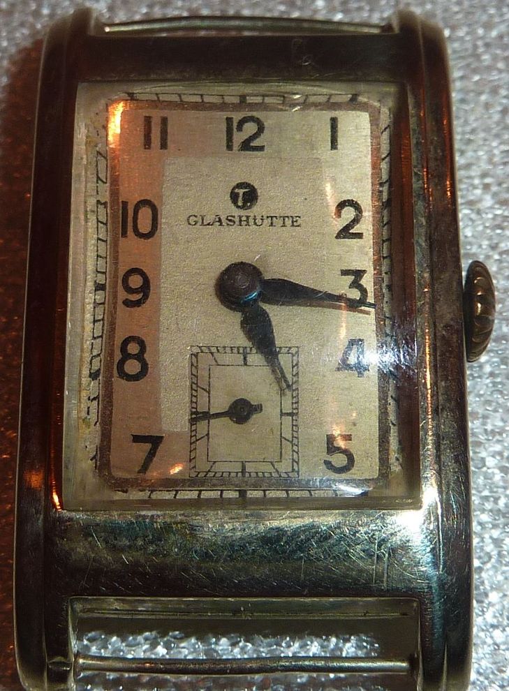 Tutima Glashütte SA (G-Uhr) Kaliber: 58 ("Raumnutzkaliber") 22 x 36 mm, в золотом корпусе.Довоенный выпуск. Механизм требует ремонта, несколько секунд идут,затем останавливаются.Плексигласс не родной.Доп.фото по запросу. Старт он же мпц. 10 000р.