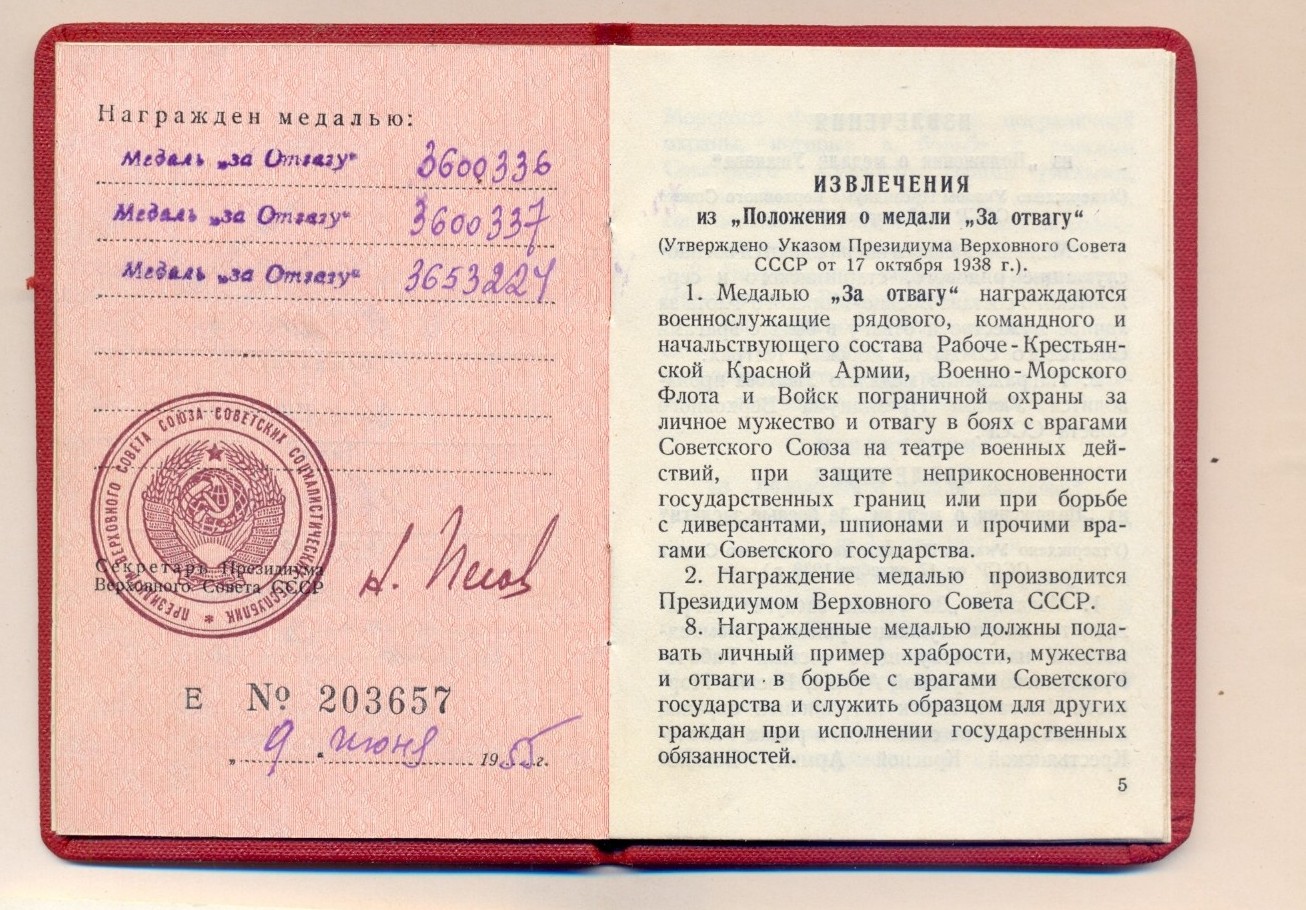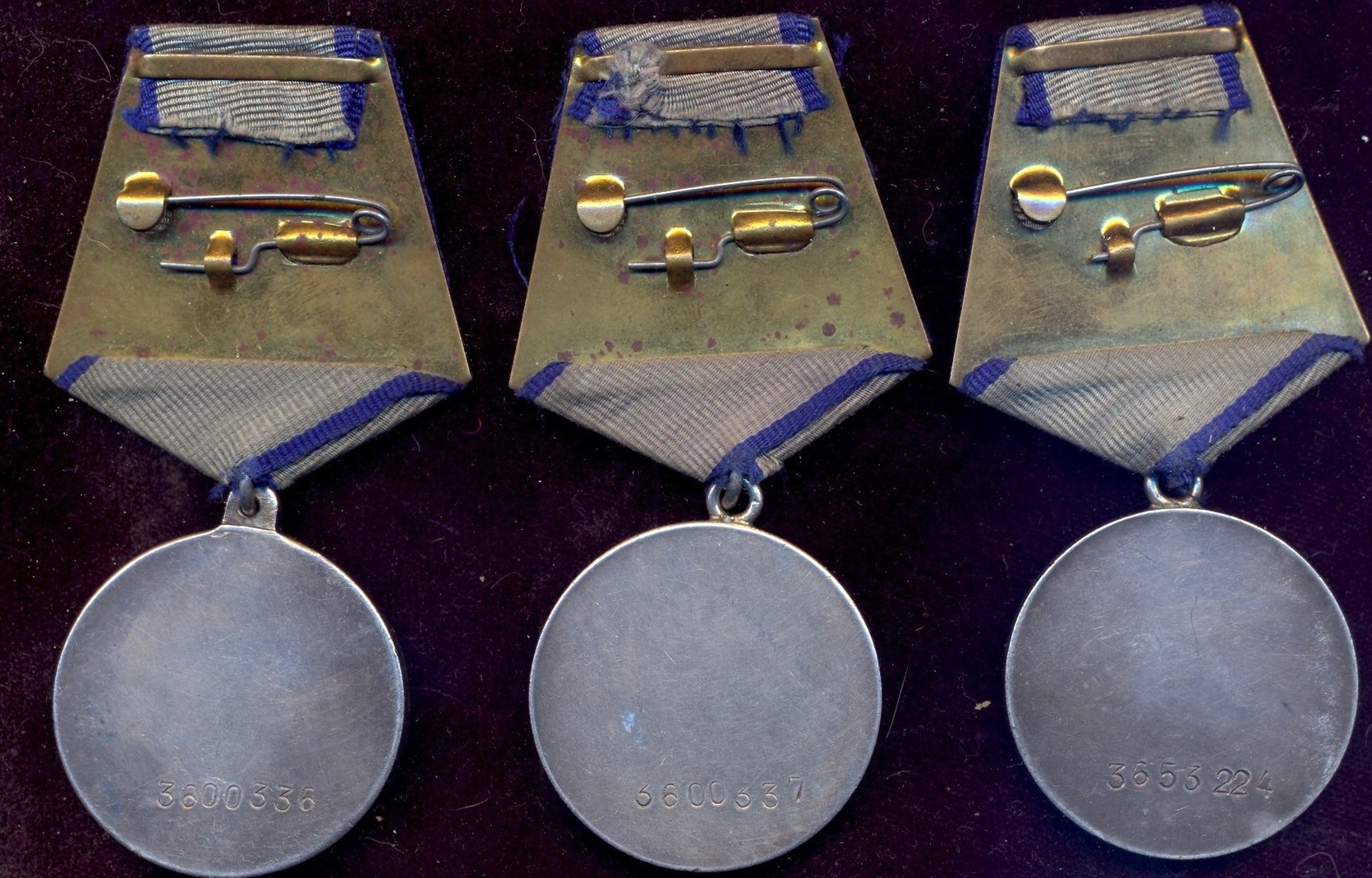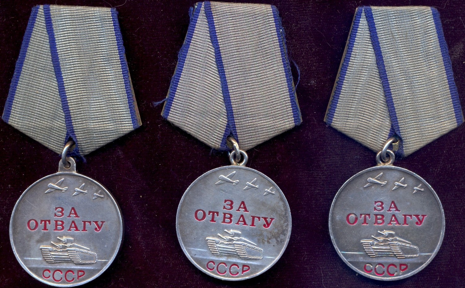 Есть интересный момент, что номера у двух отваг идут подряд, а уши у них разные. Все медали в родном сборе, и очень достойной сохранности. Промзвенья запаяны.
