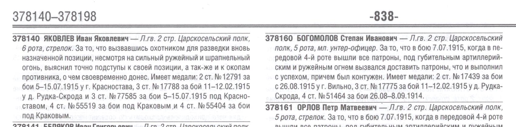 Яковлев И.Я. имел два креста(3 и 4 степ.) и 5
