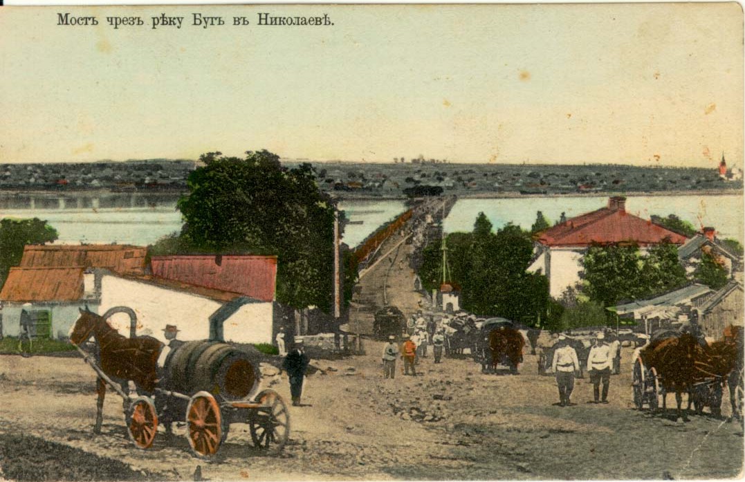 Впервые наплавной мост через Южный Буг в Николаеве был построен в 1827 году. Данные о нём, по всей видимости, не сохранились. Взамен него в 1856 году был построен новый мост, просуществовавший до Великой Отечественной войны.