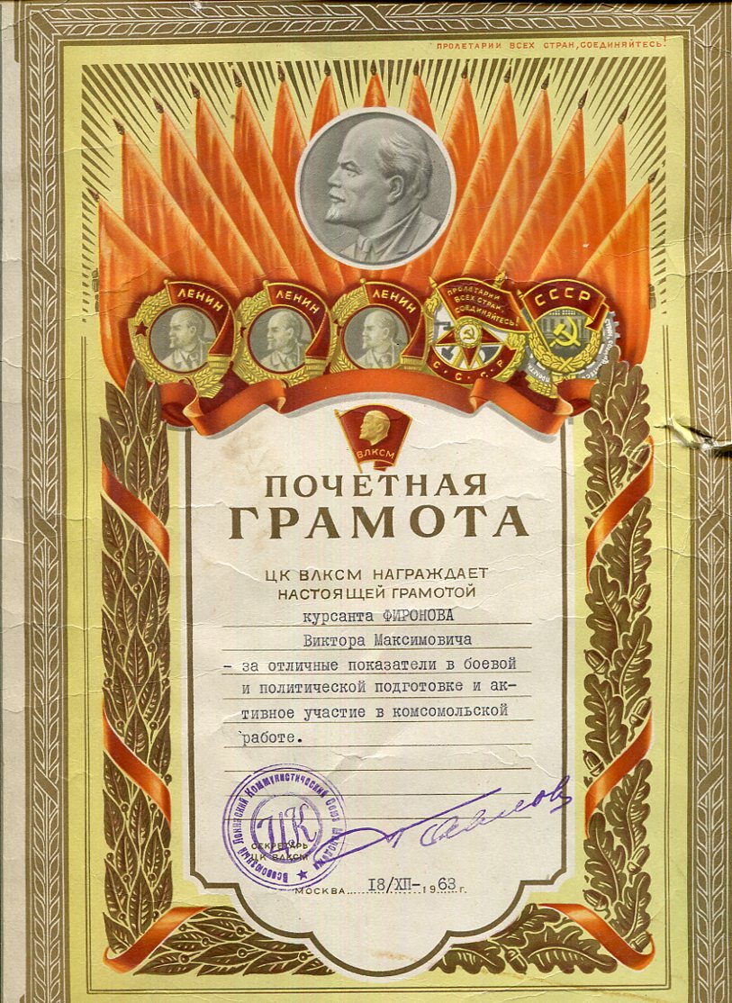 Re: Грамота ЦК ВЛКСМ курсанту Питон72 - 10 июн 2015 22:24.25 × Мини профиль пользователя Питон72 Сообщения: 4400 Зарегистрирован: 25 окт 2009 15:49.25 Статус: Не в сети - 10 июн 2015 22:24.25 #5213674