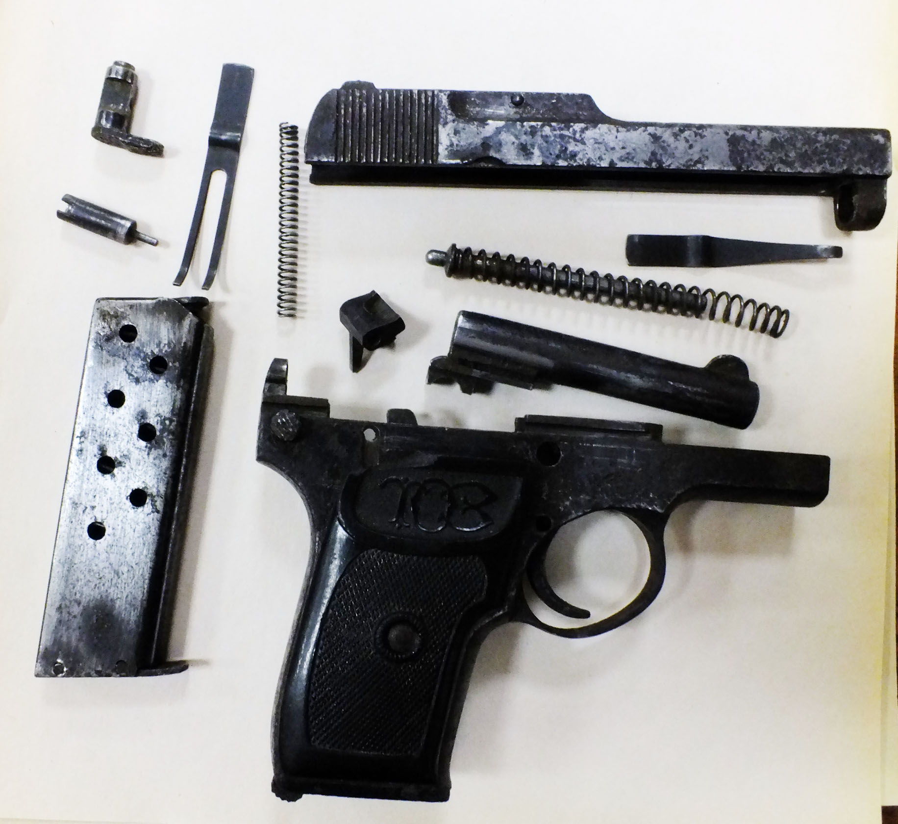 Номер 371396. Пистолет нашли ,разобрали,помыли,а собрать не смогли.