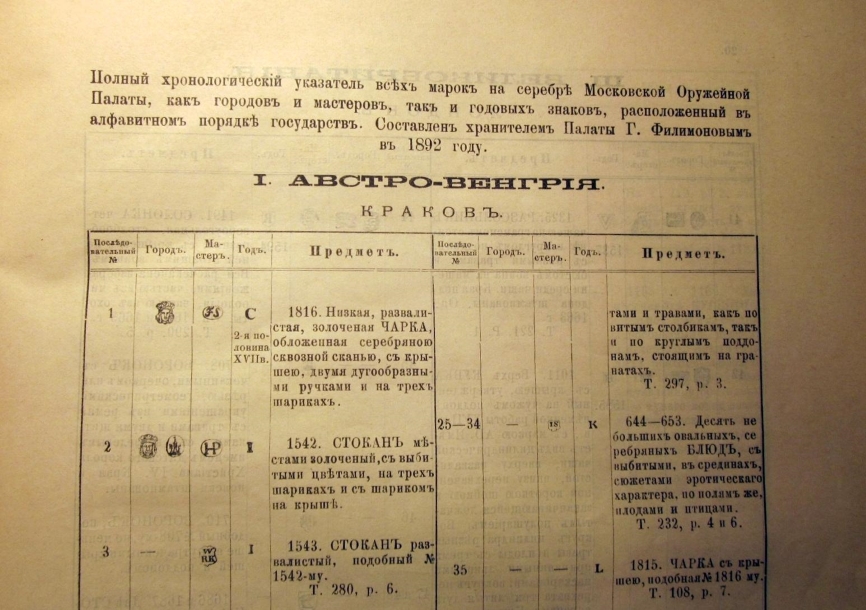 Составленъ хранителемъ Палаты Г. Филимоновым в 1892 году.