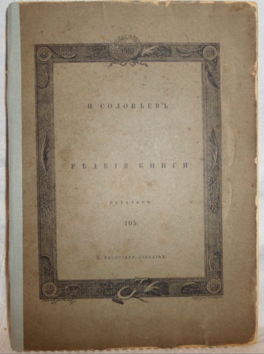 Соловьев Н. Редкие книги. Каталог № 105. СПб. 1910г.