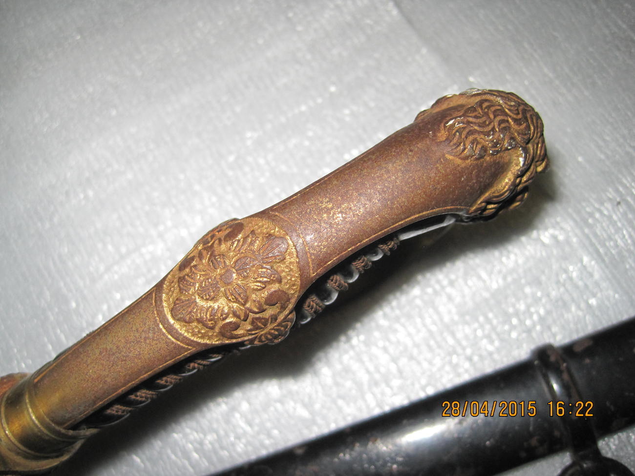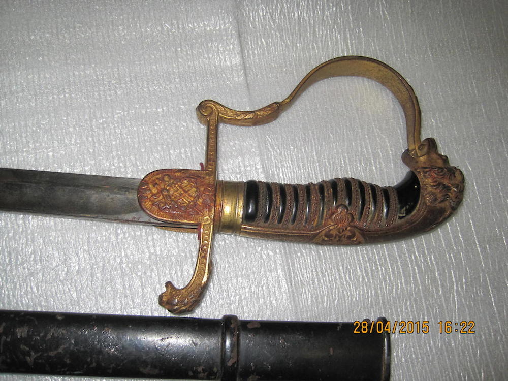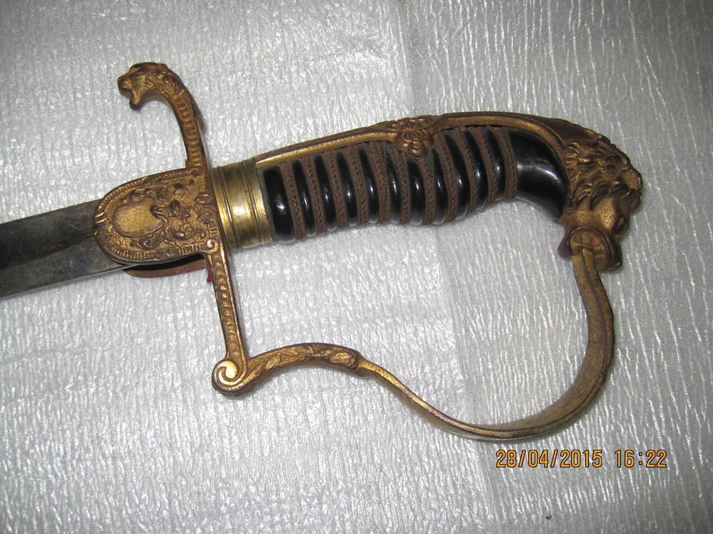 В хорошем сохране,без вмятин и зазубрин.На гарде желтый налет,скорее всего лежала с железным предметом.