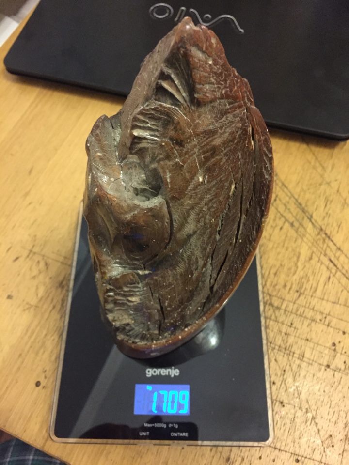 Вес 1,7 кг. Хранился у него в Тульской губернии 30 лет. Привезен с Магадана.