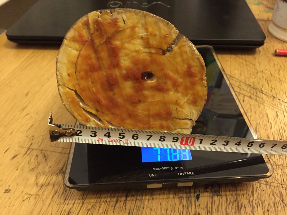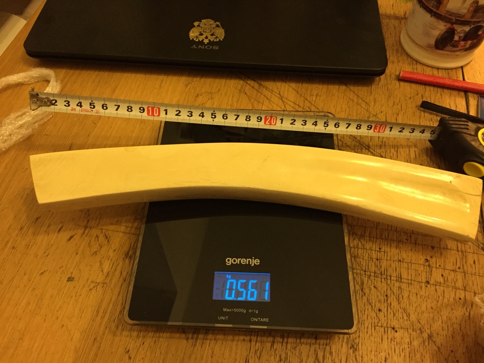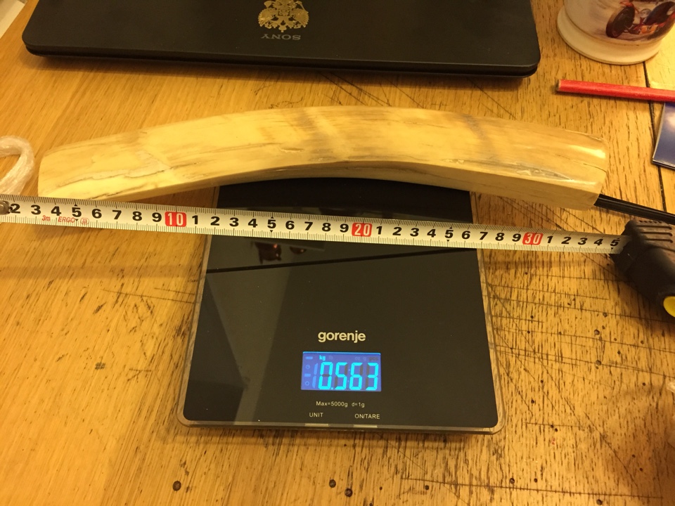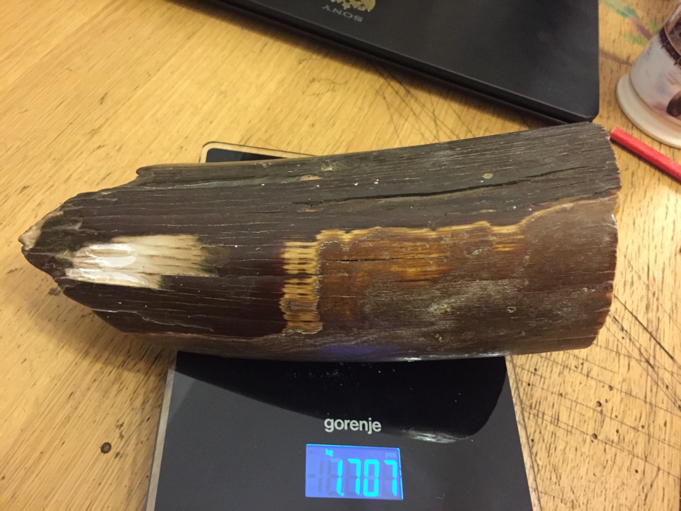 Зуб кашалота 230 грамм, но с отпиленным кончиком - 3 тыщи.