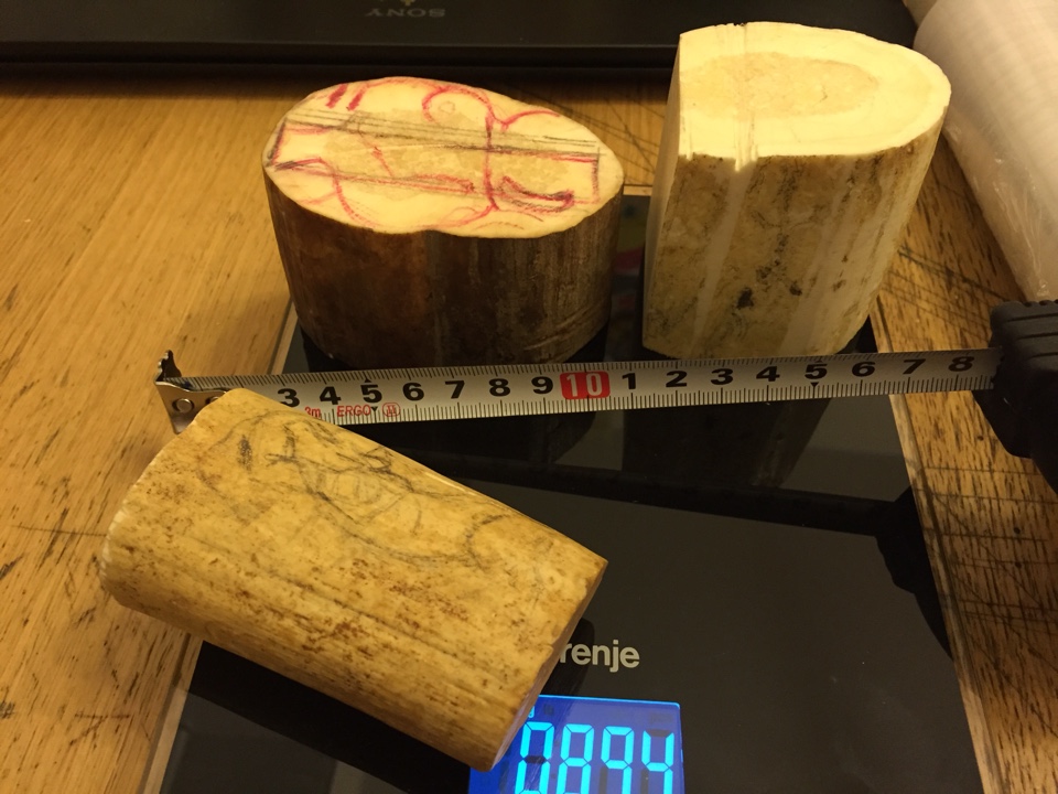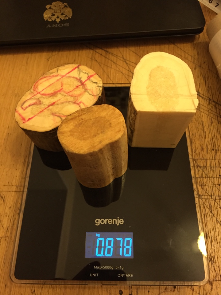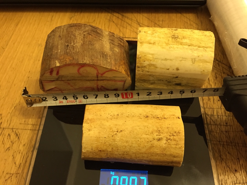 Три куска моржа. Офигенные куски, но не знаю для чего. Мореный особенно. Самый маленький тоже мореный, но слегка.