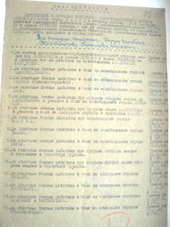 Список благодарностей за ВОВ