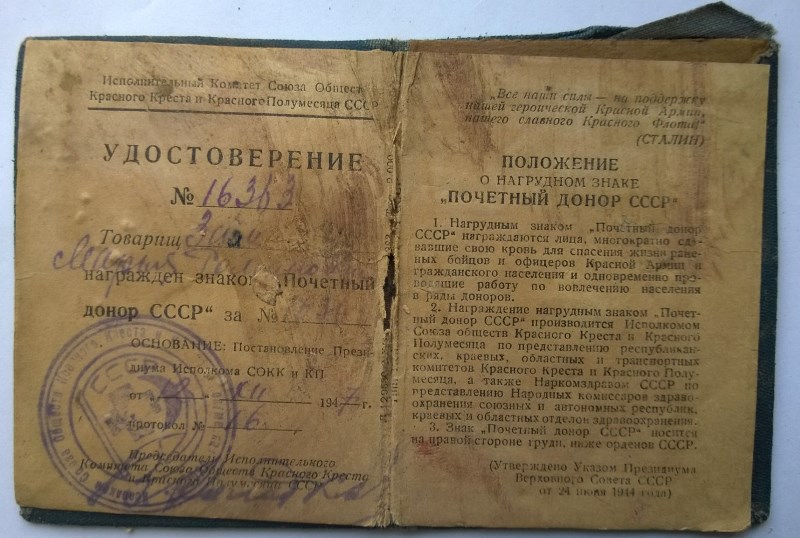 Re: Почетный донор СССР(16 363) с книжкой 47г. и удостов.дон selya - 14 май 2015 12:42.05 × Мини профиль пользователя selya Сообщения: 3096 Зарегистрирован: 16 дек 2009 15:53.54 Статус: Не в сети - 14 май 2015 12:42.05 #5182008 Еще фото: Фото