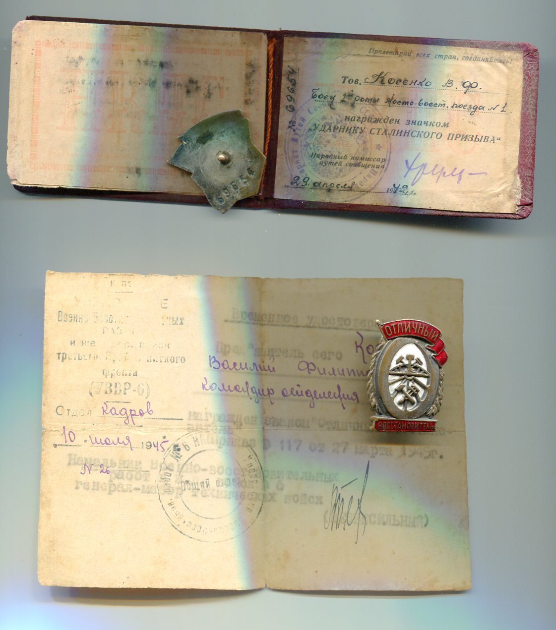 Временное удостоверение к знаку "Отличный восстановитель".