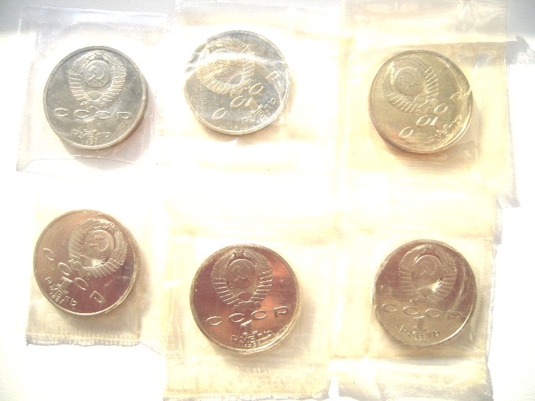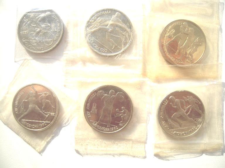 Все монеты в упаковке,кроме велосипедиста.