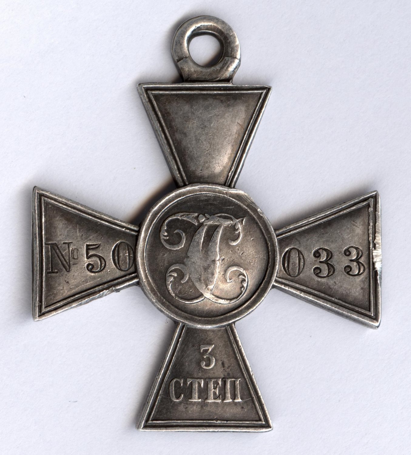 "3 марта 1915 года на высоте 405, вызвался охотником на разведку, доставил точные сведения о группировке австрийцев и своевременно обнаружил наступление австрийских колонн на 4-й батальон, причём был открыт ружейный и пулемётный огонь, что заставило австрийцев бежать в беспорядок."