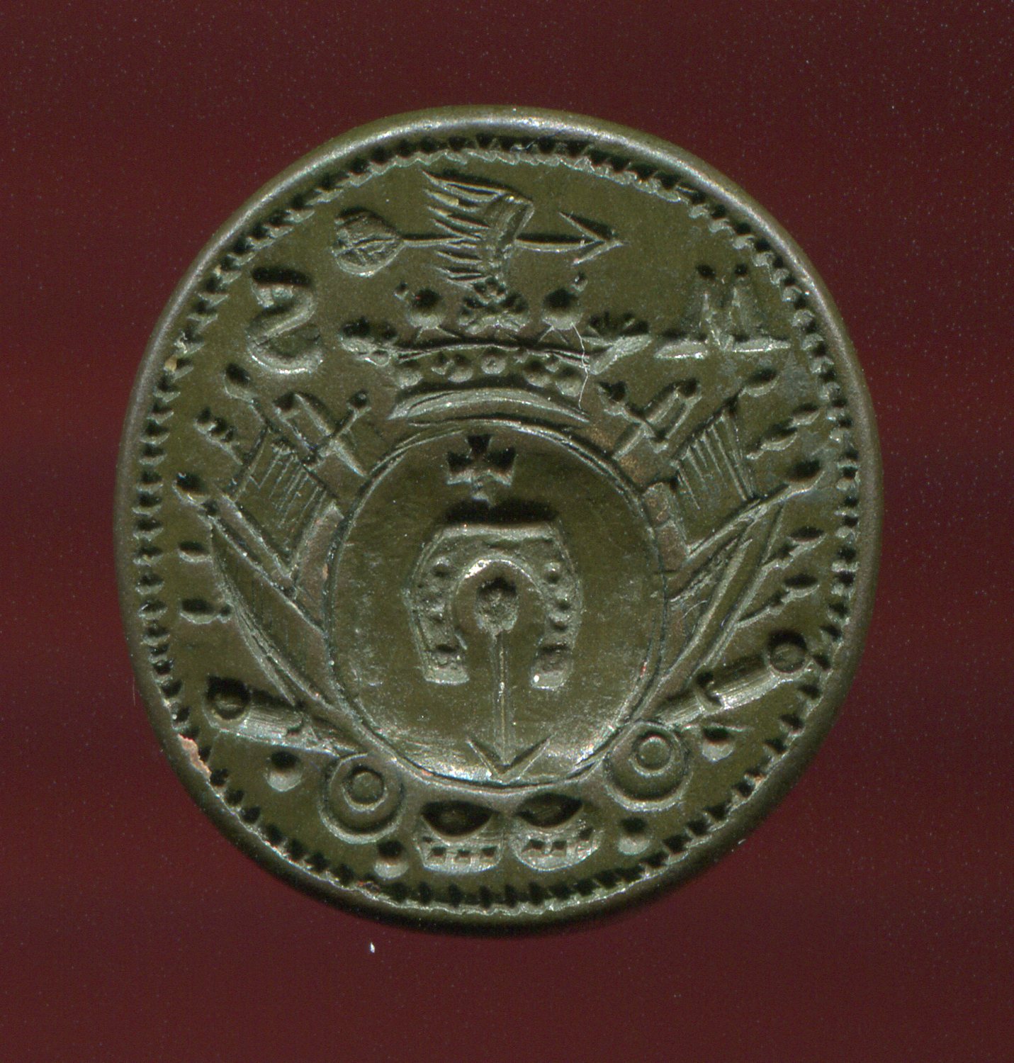 Судя по наличию военной арматуры, владелец печати был военнослужащим.