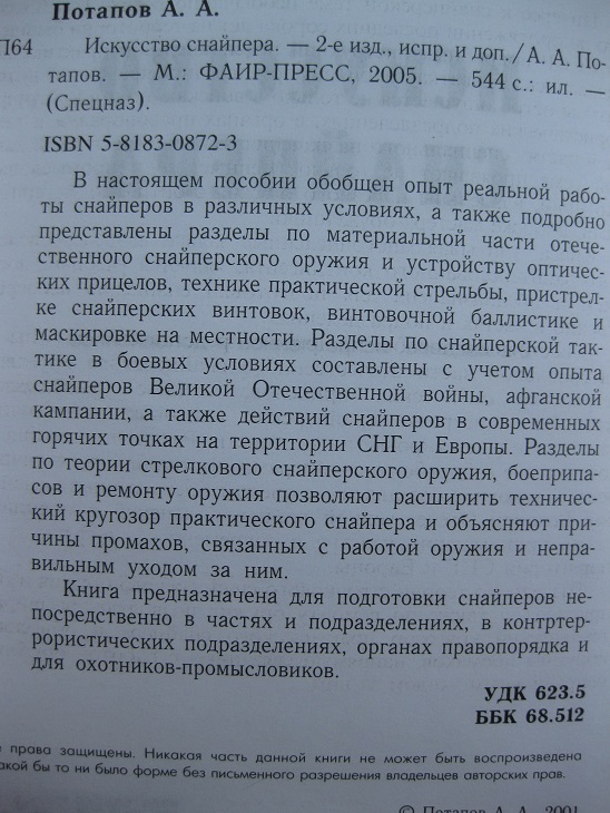 А.Потапов" Искусство снайпера" sxtt192 - 01 июн 2015 22:25.01 × Мини профиль пользователя sxtt192 Сообщения: 412 Зарегистрирован: 09 фев 2012 22:00.07 Статус: Не в сети - 01 июн 2015 22:25.01 #5204382 Книга размером 130*205 мм armagareg@gmail.com