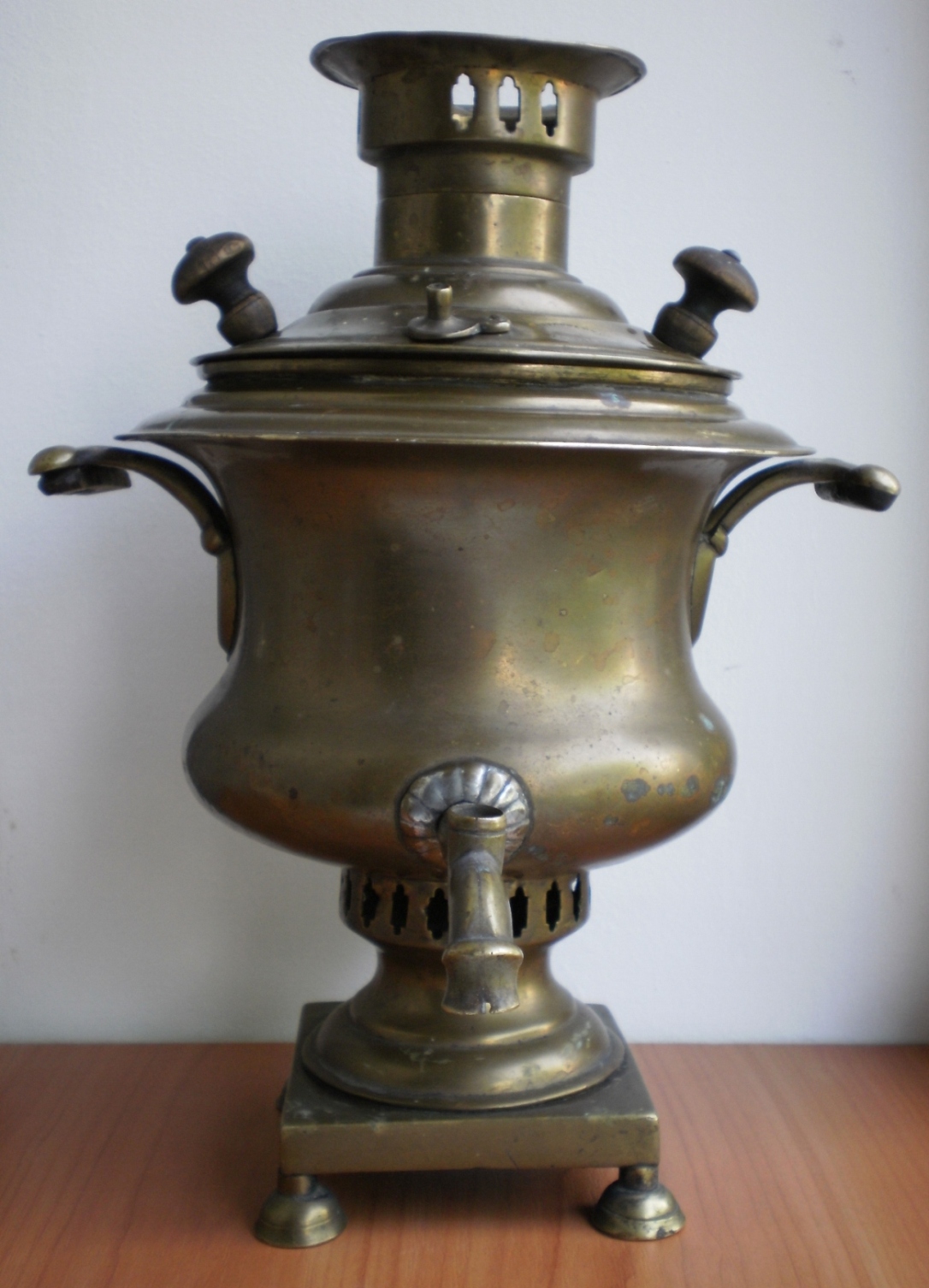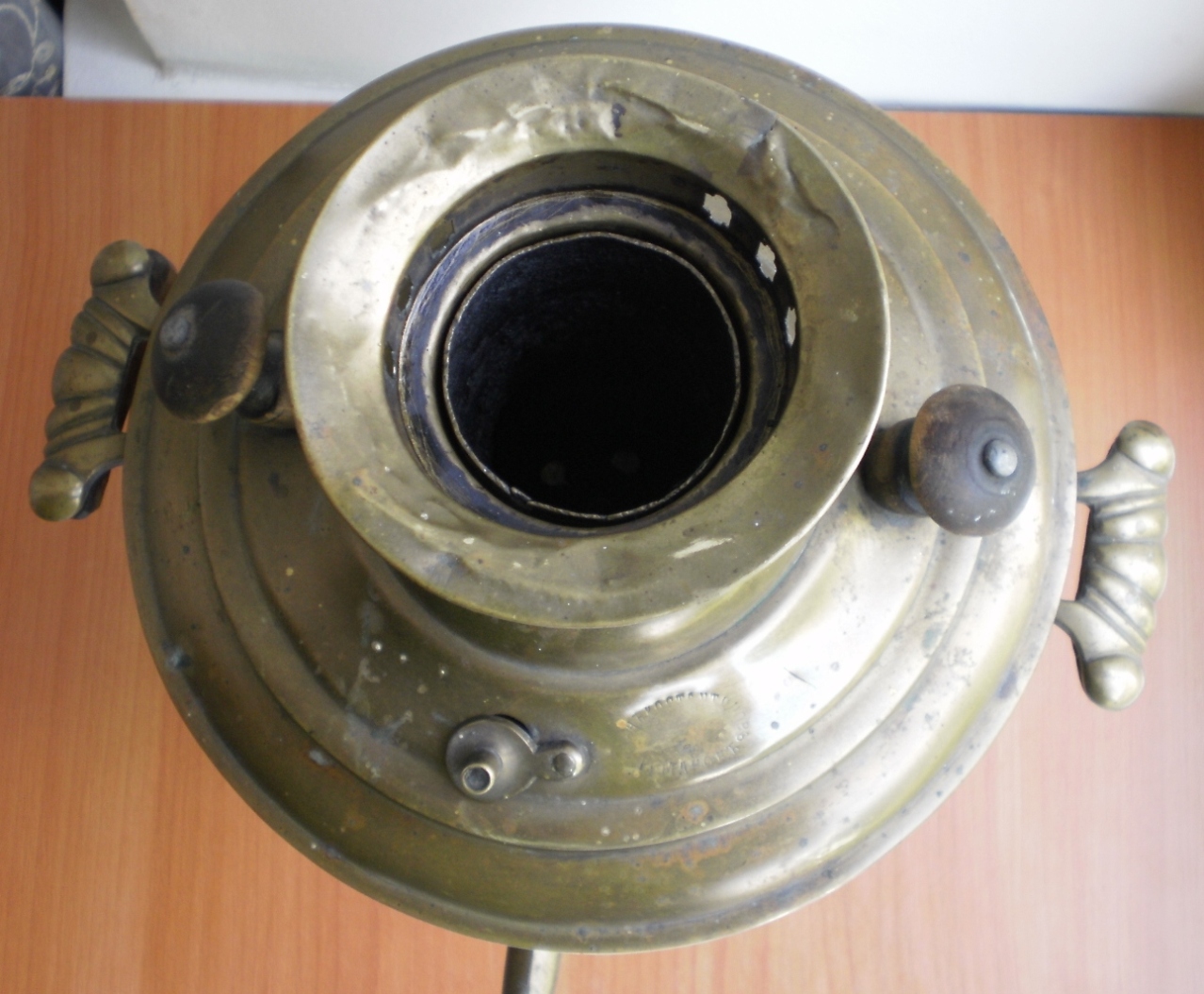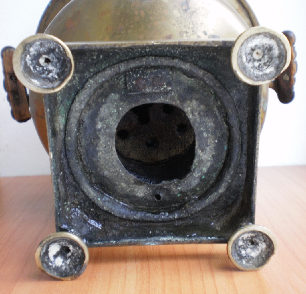 Самовар Ивана Константиновича Романова " Кратер " эгоист , 1 литр , высота 28 см. Левая ручка немного пропускает воду , нет ключика . Комплектация родная . Оригинал.
