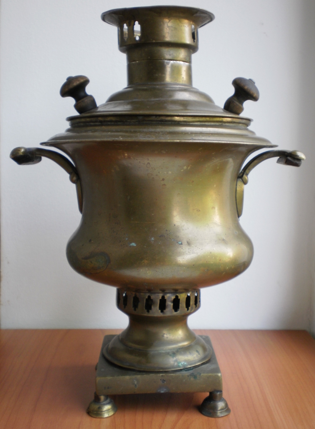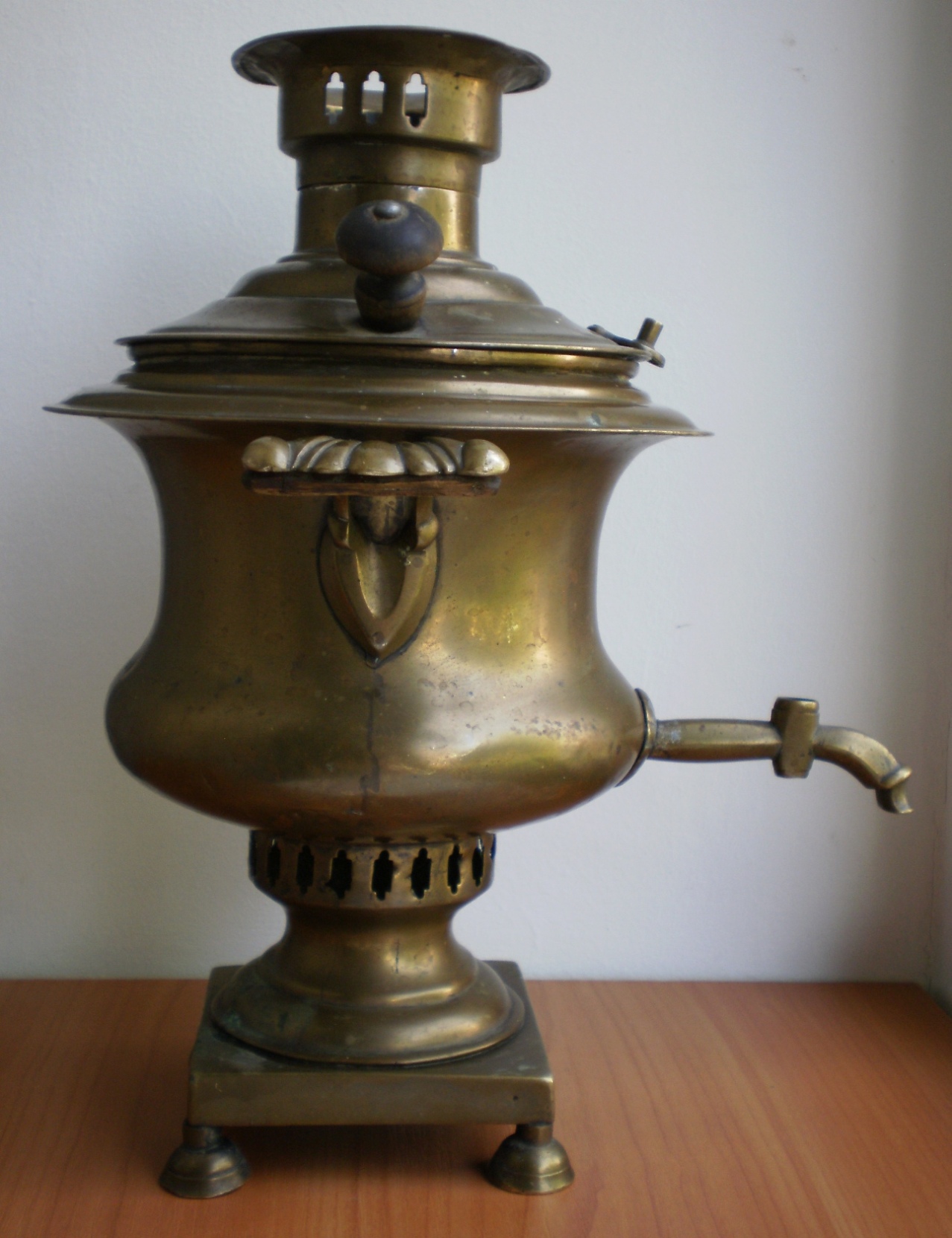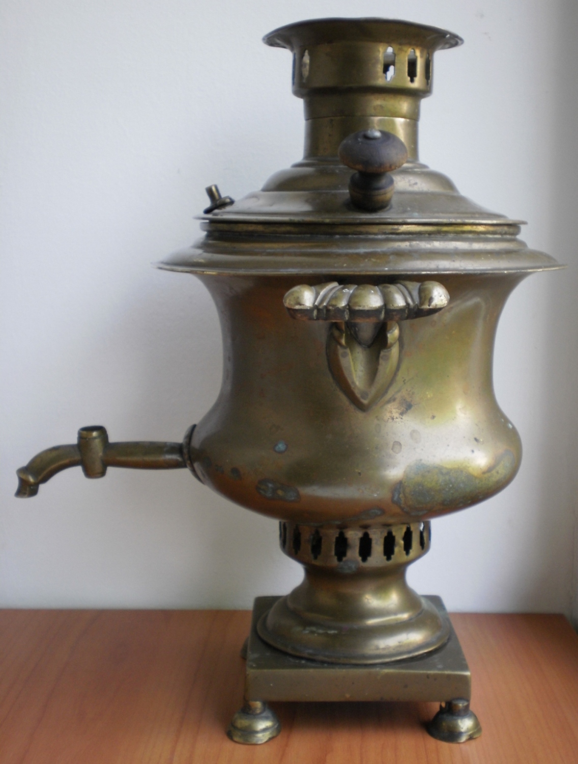 Самовар Ивана Константиновича Романова " Кратер " эгоист , 1 литр , высота 28 см. Левая ручка немного пропускает воду , нет ключика . Комплектация родная . Оригинал.