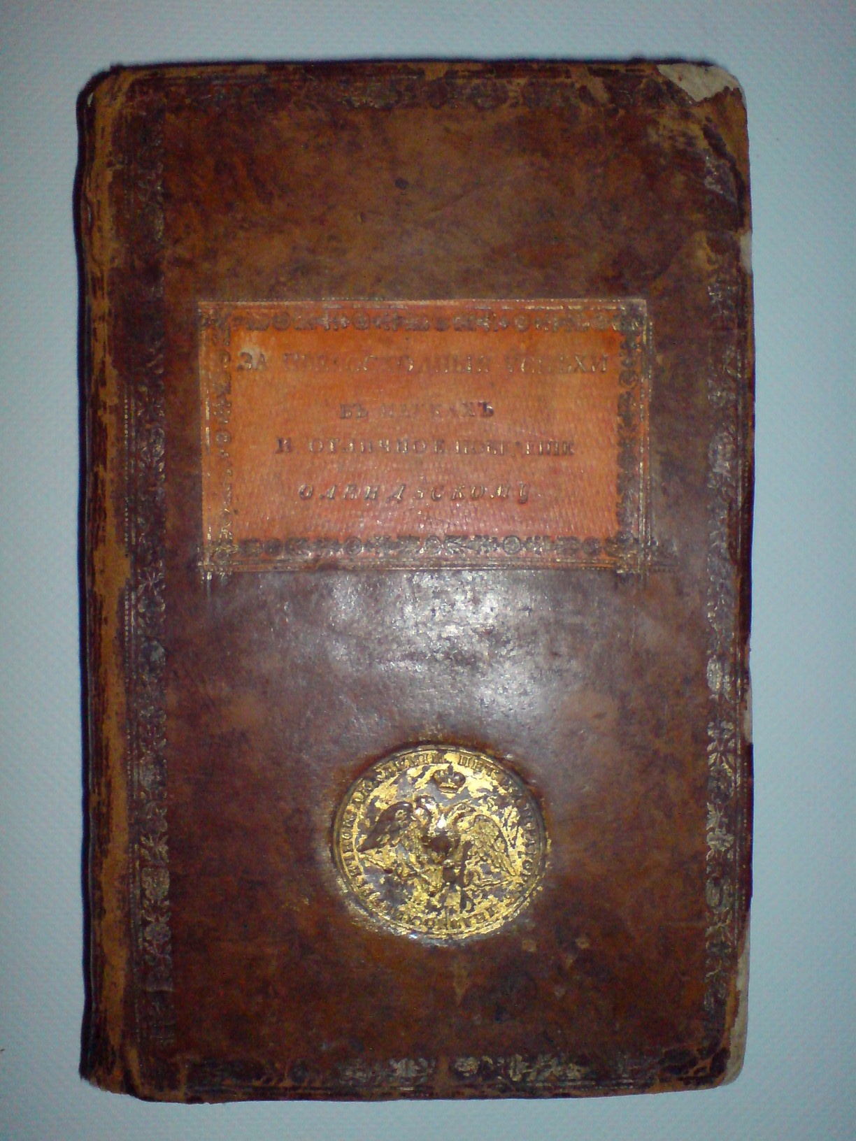 Дарственная надпись "За успехи в науках Олендзскому" и тисненый герб императорской мед. академии!