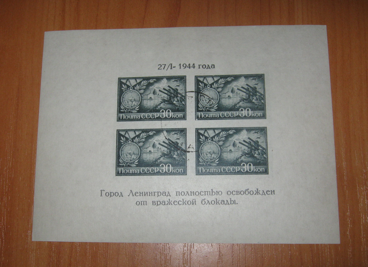 CCCР 1944 Освобождение Ленинграда 1блок** без зубцов, гашеный. МПЦ 800 , доставка 50 рублей по РФ.